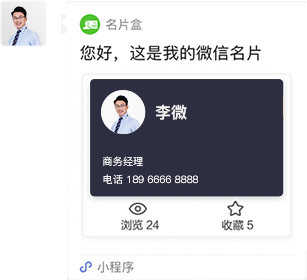 名片盒是应用BI商业智能技术的商务社交类微信小程序,在不占用手机本地存储空间的前提下,整合了名片OCR扫描识别在线派发、全局搜索、大数据透视等功能。