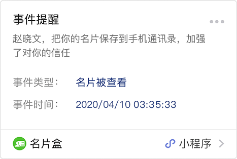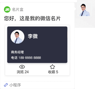 名片盒是应用BI商业智能技术的商务社交类微信小程序,在不占用手机本地存储空间的前提下,整合了名片OCR扫描识别在线派发、全局搜索、大数据透视等功能。